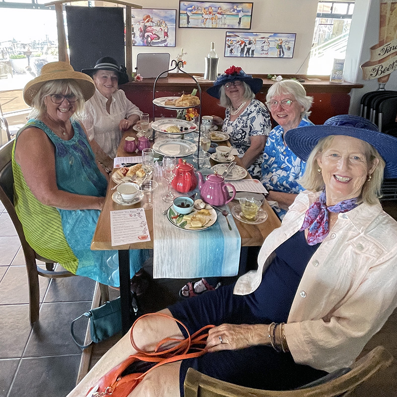 The Harvest Tea Party on the Bay Fundraiser happened Sunday, September 7th. Many guests wore stylish hats and lovely outfits. Members and guests savored a delicious tea menu that included finger sandwiches, sweet treats, bubbly wine, and various teas. We thank The Savory Palette for providing another successful tea menu. This was our final 2025 fundraiser, aimed to support the SBWN Cuesta College Female Reentry Student Scholarship. Our sincere thanks go to all who attended. We also thank those who gave money, gifts, or time. Your help made the event a success. It was truly appreciated.